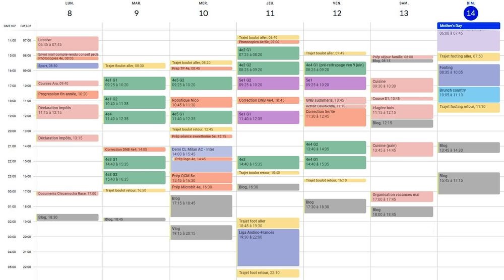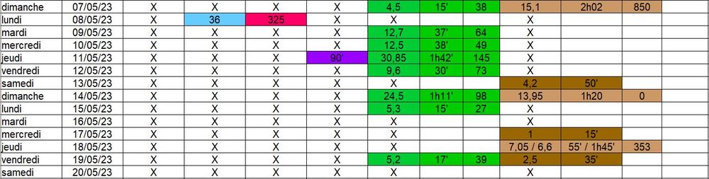 Loisirs: là aussi le grand vide! J’ai raté un tejo (vendredi 12 mai) pour raison d’épuisement et de besoin de repos avant la semaine tendue d’encadrement de voyage…. Puis après évidemment rien!
