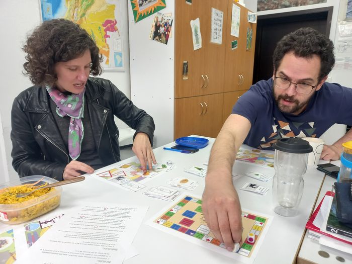 Moins Pro: alors là pour une fois, de nombreux éléments! Des collègues qui préparent leur cours de 5e en testant le jeu de la nutrition… à l’heure du repas!