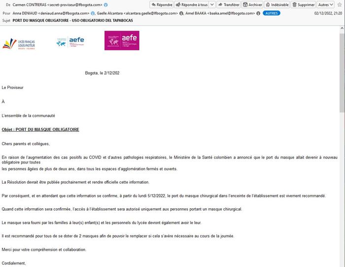 Santé: la mauvaise nouvelle, le gouvernement se pose fortement la question du retour du masque dans les lieux fermés et publics, soit … les salles de classe! Donc le lycée nous encourage à le porter, jusqu’à ce que paraisse le décret le rendant obligatoire pour nous!