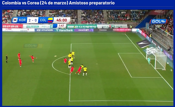 Mais, prévenu par Yvette, vendredi à 6h du matin j’ai pu regarder un drôle de match amical (avant le boulot) entre la … Corée… et la Colombie! 2-0 à la mi-temps pour les locaux, 2-2 après 3 minutes en 2e mi-temps et qui sera le score final.