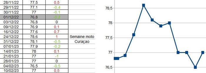 Santé: que te présenter ici à part l’évolution du poids….? Qui stagne vers 77 kg….