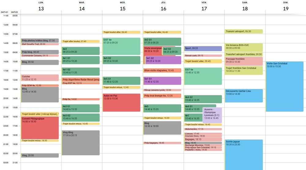 Moins Pro: beaucoup de réunions (conseil pédagogique, Aulas en Paz,….) et d’activités annexes (Forum des métiers) mais aussi l’accueil d’observateurs cubains dans ma classe (enfin le fameux stage des entrants dans le métier, mais mes 2 stagiaires venaient du lycée français de La Havane).