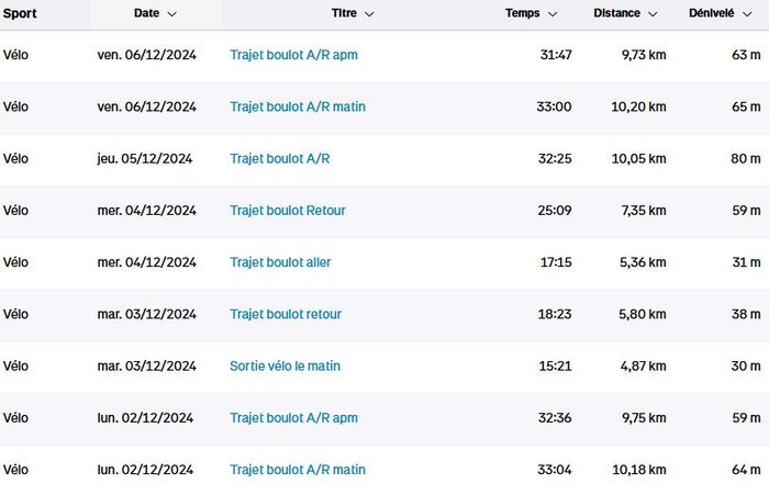 Sinon pour le sport « réel », je n’ai repris que le jeudi 5 décembre après mon marathon, même si j’ai fait beaucoup de vélo au final!