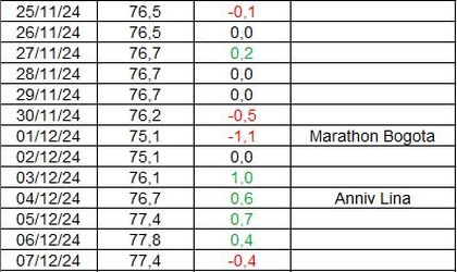Après un bilan complet des 3 mois d’analyse pondérale, juste quelques mesures de plus, jusqu’à hier, quand commence une surveillance plus relâchée.