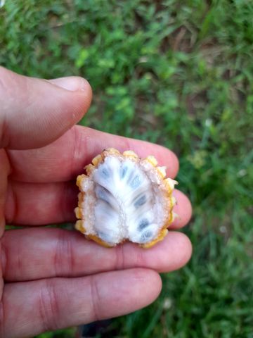Je termine avec un tout petit mot sur la flore, avec surtout des fruits inhabituels chez nous: un cousin sauvage et miniature du guanabana, ou encore des fruits d’une espèce de palmier.
