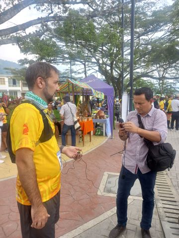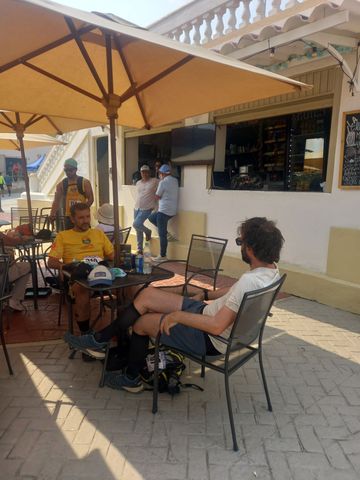Avec son bar, désigné meilleur spot pré-course! A grands coups de Pepsi, car à 14h, la chaleur (autour de 30°) nous percute de plein fouet, nous patientons jusqu’à l’échauffement. Avec l’interview des étrangers… mais pas à propos de la course, à propos du ….rhum local!