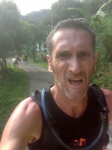Première heure très compliquée, avec une chaleur qui coupe les jambes et surtout des ascensions entre le 2e et le 9e kilomètre. Mais les paysages sont beaux, et le soleil baissant à l’horizon, le climat devient plus supportable.