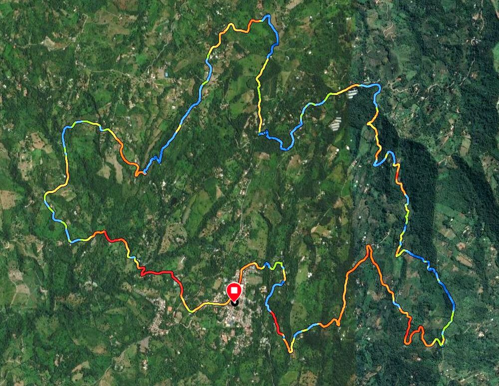 Arrivés vers 13h20 à Nocaima, direction le bucolique parking un peu en extérieur du village, et préparation des affaires.