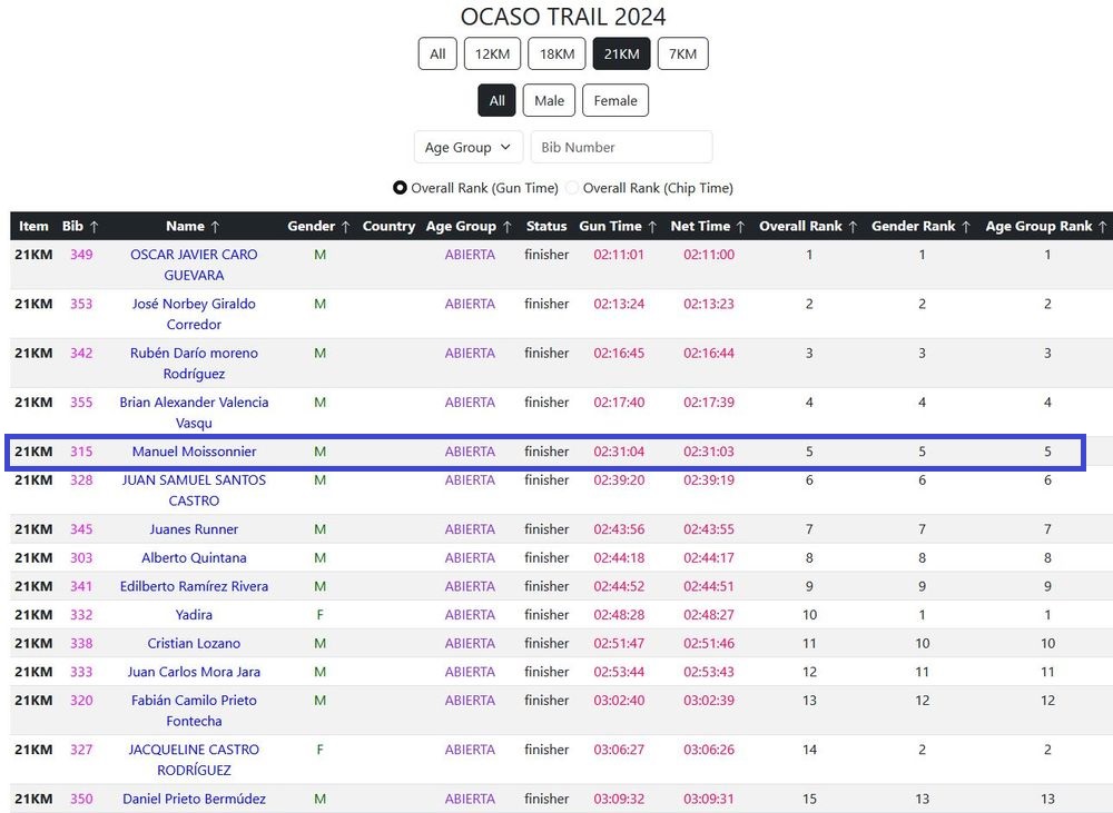 Nous voici dans le coeur du sujet: que s’est-il passé lors de cette épreuve de l’Ocaso Trail 2024. Je rappelle que nous avons monté de catégorie, en passant du 12 en 2022 à 21 en 2024. Enfin vendu pour 21…. Parce que bon, la logistique c’est bien sympa mais….