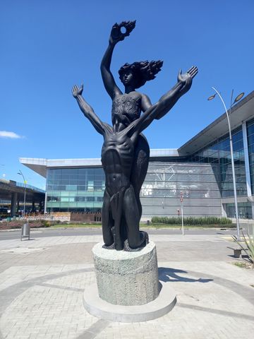 L’une nommée Oracion Al Proscito, de Rodrigo Arenas Betancourt, plutôt dans le genre classique, statue remplie de symboliques (mais je n’ai pas tout compris)….