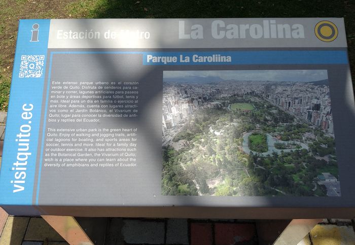 Mais tu peux aussi l’atteindre avec le tout nouveau métro, avec pas moins de 2 stations, une à chaque extrémité du parc, Iñaquito et Carolina.