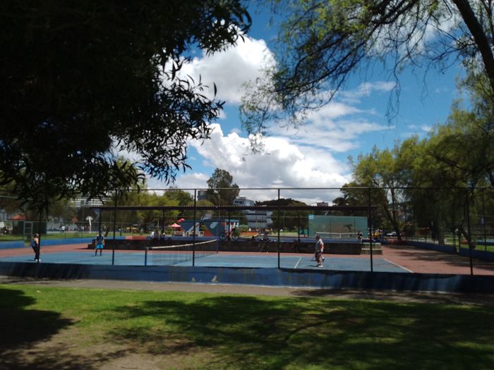 Tennis, terrains en dur, en terre battue ou simple mur si tu n’as pas de partenaire! Un classique apparemment, y’a les mêmes au Parque Nacional à Bogota.