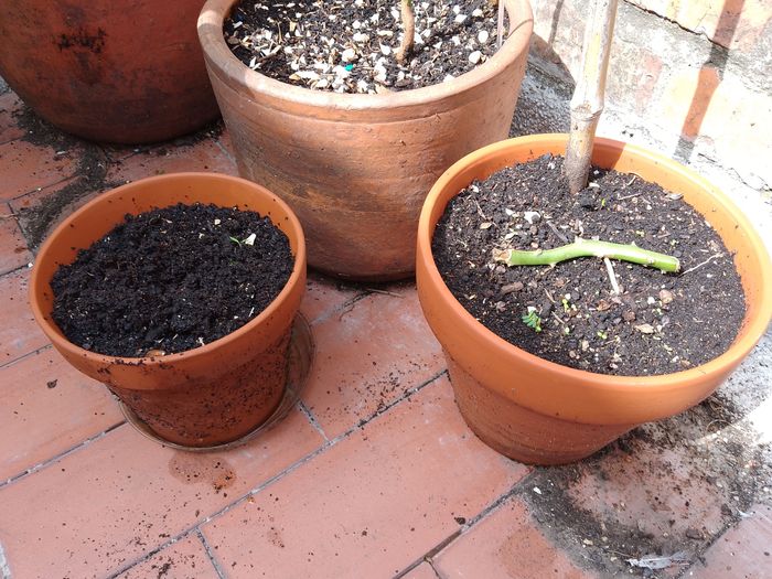 Et enfin du « désherbage » (en gros accepter l’inéluctable…) et rempotage dans les grands pots ainsi libérés.!