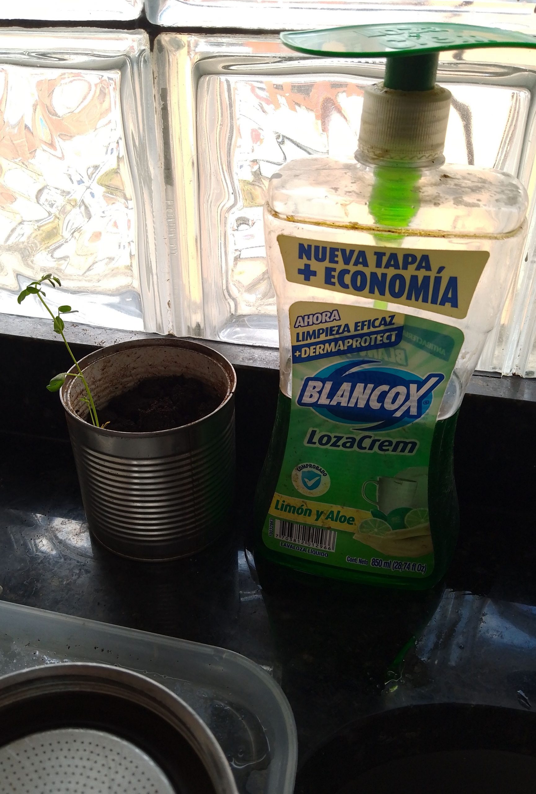 Je vais laisser également le plus longtemps possible, cette plante qui a germé dans le marc de café! Non identifiée, mais sûrement un légume ou une légumineuse cuisiné par mes soins (poivrons, lentilles, pois chiche ou ….).
