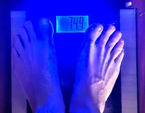 En tout cas la pesée de ce matin (rajoutée après la publication de ce post) montre ceci: 74,9 soit 8 de moins que le premier cliché sur cette page!