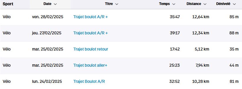 Un mix de sorties courtes surtout sur le plat et le goudron et de marches dans la ville. Avec également le retour du vélo, comme toujours pour le boulot!