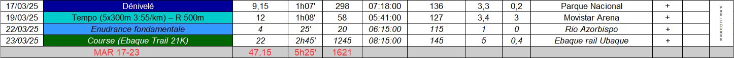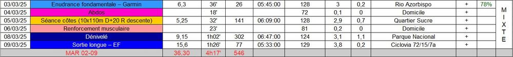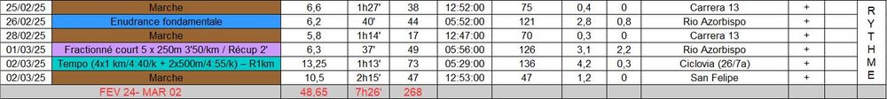 Nous en étions arrêté à un état de fatigue assez prégnant, à la limite du syndrome du surentraînement. Alors où en est-on en ce 22 mars? Un petit état des lieux, semaine par semaine.
