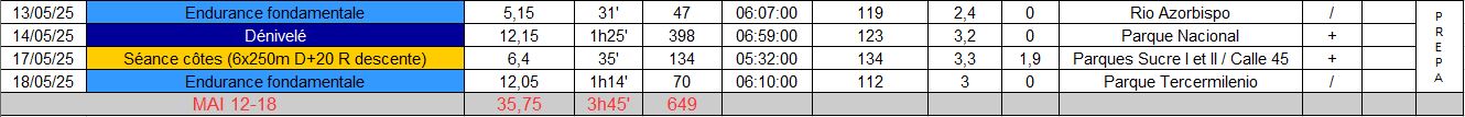 Même si ce n’est pas beaucoup c’est la dernière avant de reposer le corps où je peux faire un peu plus intense! Sans photo, car je ne prends plus mon téléphone. Pas envie trop secouer le nouveau. Donc, mardi, de trè bonne heure, pour Lina, et avant mes cours, de l’endurance fondamentale. Le mercredi une impro sur les sentiers VTT du Parque Nacional pour faire du D+.