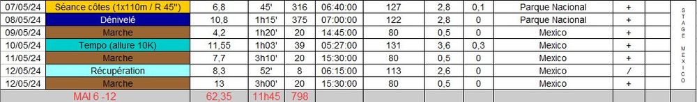 Le reste de la semaine se passe en stage au Mexique, et je n’étais pas sûr de pouvoir aménager un créneau pour courir là-bas. Et puis, abus niveau nutrition (un petit-déjeuner d’enfer à l’hôtel, beaucoup d’alcool et peu de légumes dans la cuisine mexicaine)! Mais entre la marche (visites, de la ville ou du site archéologique de Teotihuacan)….