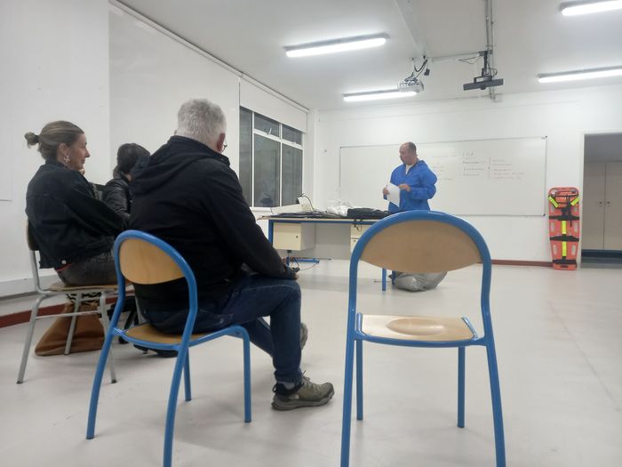 Le formateur évoque avec nous les soucis légers qu’il peut nous arriver en classe: malaise, crise d’épilepsie, chute et nous rappelle les comportements de base à adopter. En soulignant bien que nous sommes les premiers intervenants, mais pas des secouristes!
