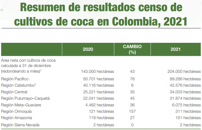 On estime qu’au total, il y a 204.000 Ha de culture de coca en Colombie en 2021. Réparties dans de nombreuses régions, dont le Nortesantander, où vit Lina!
