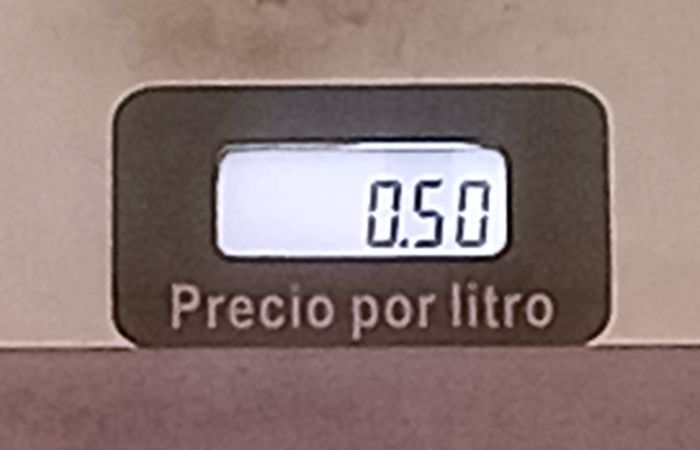Chose étrange, il faut, en attendant, aller payer avant! Maximum 20 dollars 5pour 40 litres). Car il y a quand même un avantage, c’est le prix du litre: 0,50 USD (0,46€). Mais bon il faut soit deviner ce dont tu as réellement besoin, soit aller, après, te faire rembourser la différence!!