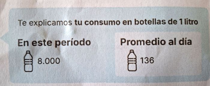 En étant absent et avec l’arrivée générale d’eau fermée, ils nous indiquent que nous avons consommé 136 bouteilles d’un litre par jour!
