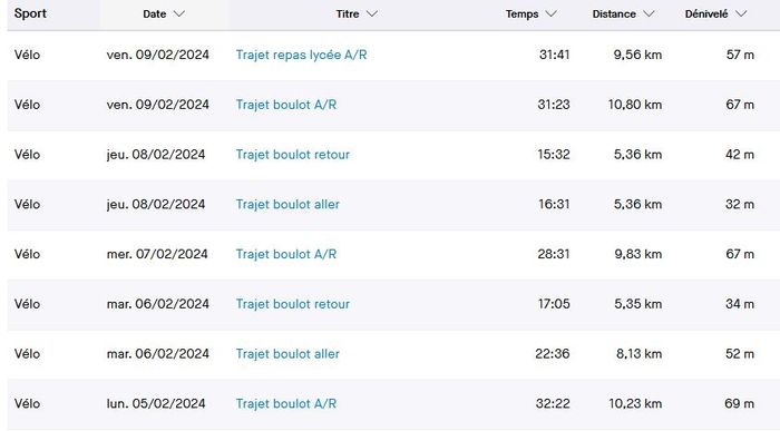 Ajoutons à cela 2 séances de musculation à domicile et tu obtiens le bilan de cette semaine.