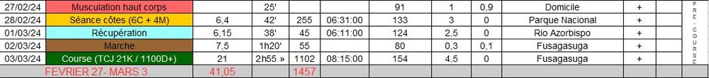 Mercredi 28 février, une petite séance de côtes au Parque Nacional. Et vendredi, un léger footing pour dérouler les jambes.