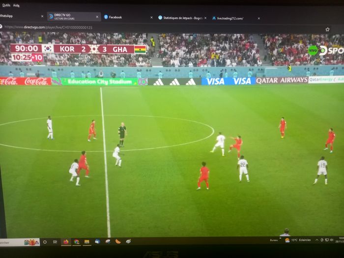 En suivant, mes autres petits protégés, les coréens affrontaient le Ghana à 8h00, heure locale de Colombie! Regarder tout en faisant un peu de sport. Et au final, un peu le même scénario, menés de 2 buts, revenus à égalité, mais perdant au final! Pas facile pour mes protégés ce matin-là!