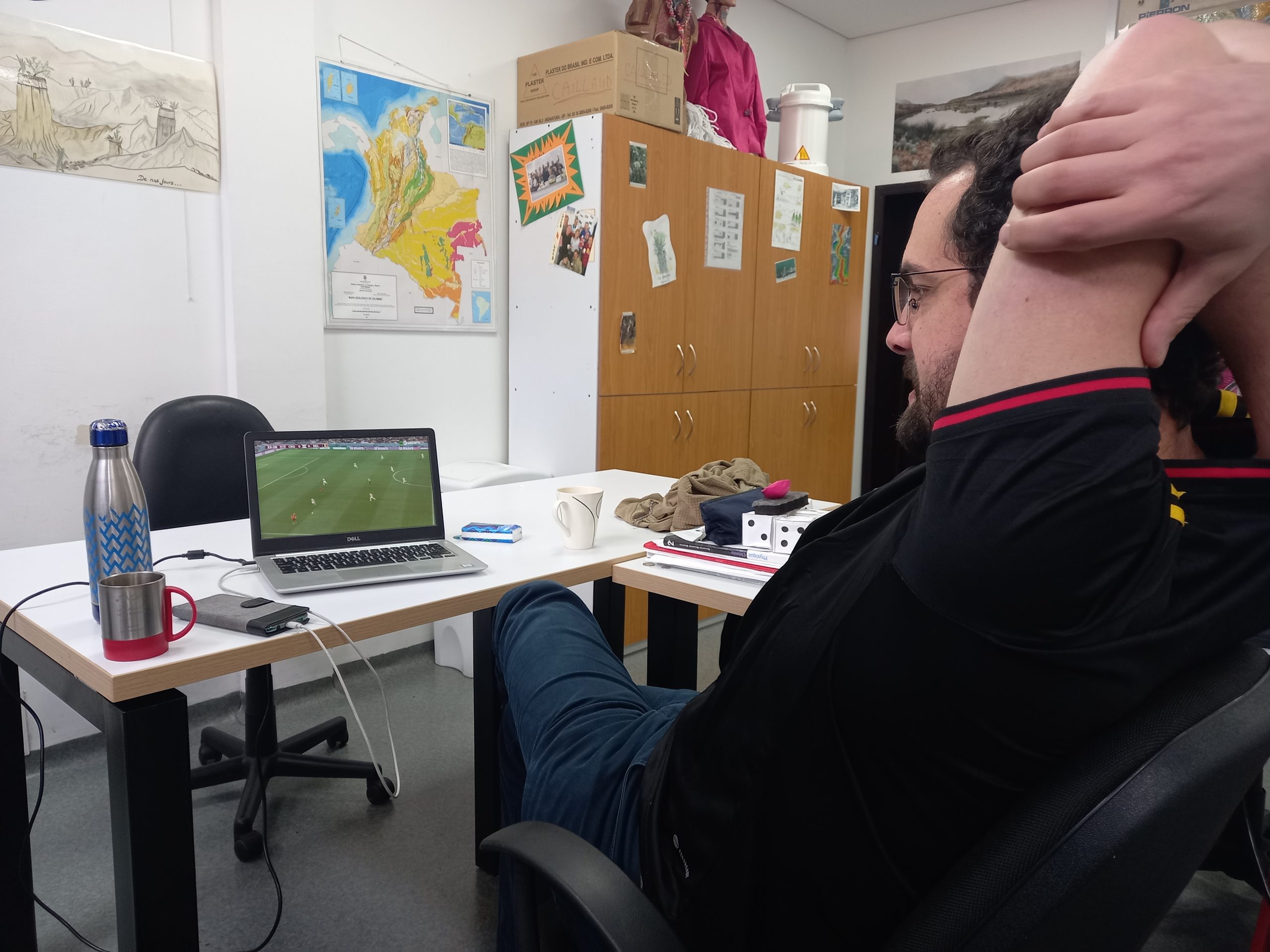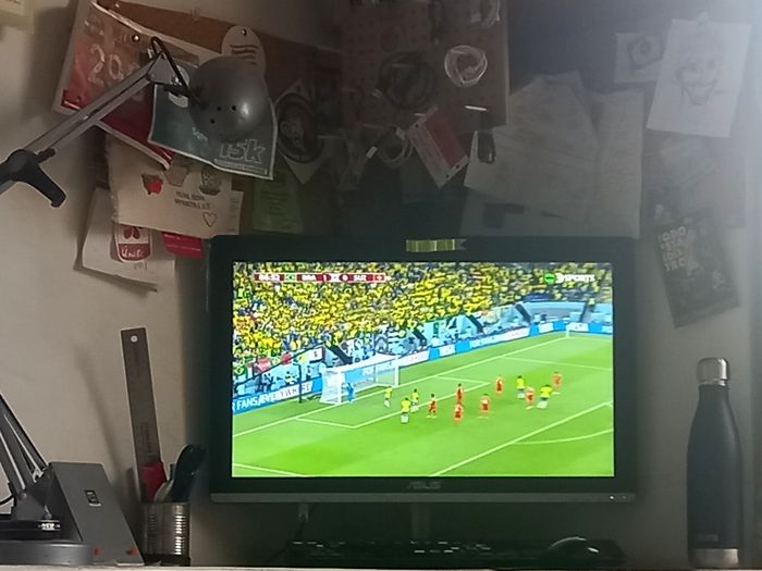 Jeudi, un peu la folie au lycée, même si rien d’organiser, la France ne joue pas! Mais pas mal de belges parmi les élèves comme parmi les collègues…. dont Ben en SVT qui mate le match quand il n’a pas cours!
