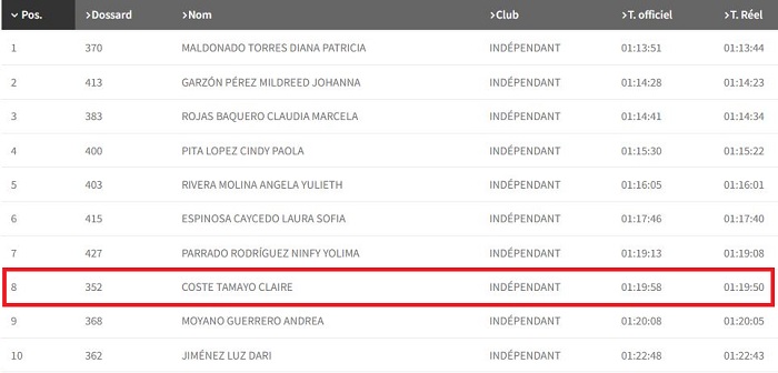 Mais l’important c’est de regarder sa catégorie, master A féminin (entre 40 et 49 ans)! Et là c’est une superbe 5e place qu’elle obtient.
