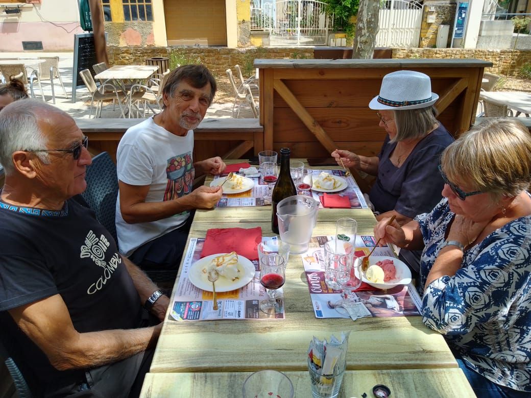 Et des rencontres-retrouvailles…. avec ma marraine et mon oncle pour un petit resto sur la place de St Vérand pour leur … 55 ans de mariage!