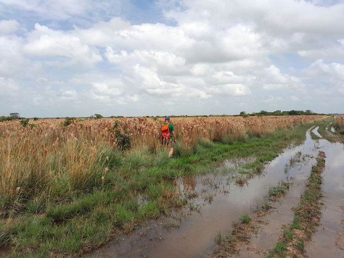 Vendredi matin à l’aurore: une longue longue balade (11 km) très humide. C’est la saison des pluies et les terres s’inondent, la végétation pousse drue et les animaux en profitent pour faire du gras! Tout l’inverse de la saison sèche où le paysage est méconnaissable et les animaux souffrent, les points d’eau et la nourriture disparaissant.
