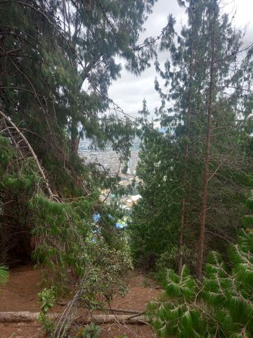 Nous empruntons donc le sentier du Mirador de la Virgen, sur un replat, sous les pins, et qui nous amène, à la vierge bien sûr et surtout à un point de vue sur Bogota.
