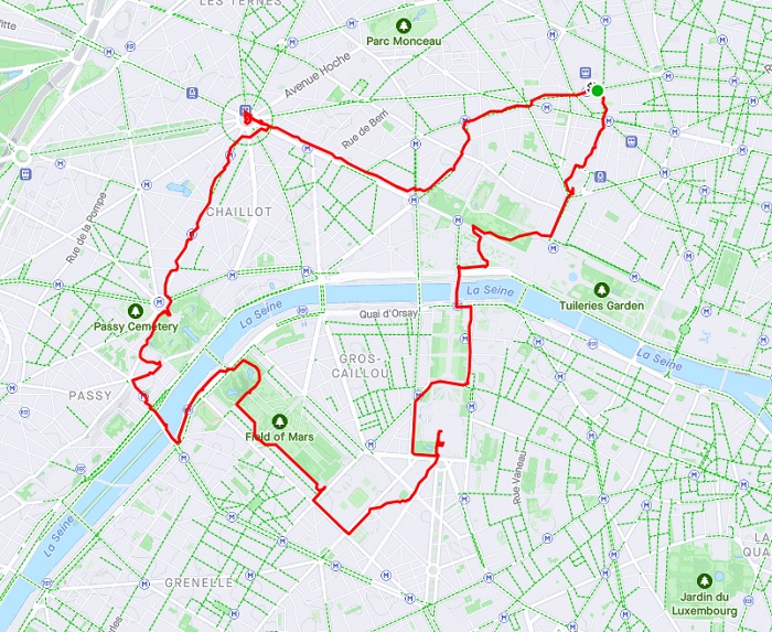 On traverse la Seine, mais pas directement (… accès au Trocadéro fermé)…, par le Pont de Bir Hakem pour monter justement au Trocadéro….