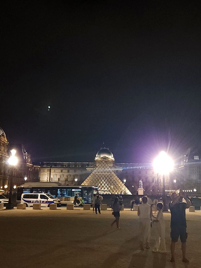 Et une balade nocturne digestive, vers les Tuileries, le Louvre et la vasque olympique…. posée et quasiment invisible!