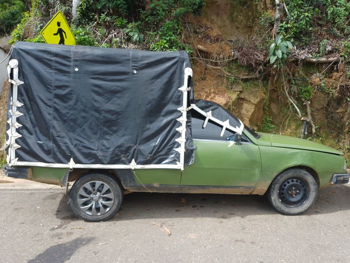Dans la campagne colombienne, on trouve souvent des pick-up, pas forcément 4 roues motrices, leurs propriétaires étant de sacrés pilotes pour affronter les pistes locales. Servant à transporter aussi bien des cultures, fruits et légumes à emmener aux grossistes les plus proches ou au marché,, des denrées commerciales à livrer dans les hameaux, que des passagers ou du bétails. Et dans la famille Renault, j’avais déjà vu quelques exemplaires inconnus et inimaginables chez nous, mais là, cette R18 pick-up de campagne a fait ma journée!