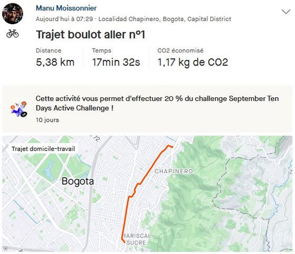 Donc le lundi matin, après un réveil réglé à 6h15 (mais pas eu besoin je suis toujours en phase absorption du décalage horaire, réveil systématique à 3h du matin depuis jeudi dernier), je saute sur Igor Tres, préalablement préparé) avec mon cartable (également préparé la veille) pour ne pas être en retard au café. Pour le premier des au moins 150 trajets de la future année (36 semaines à 4 A/R par semaine, plus quelques autres pour des réunions ou conseils de classe).