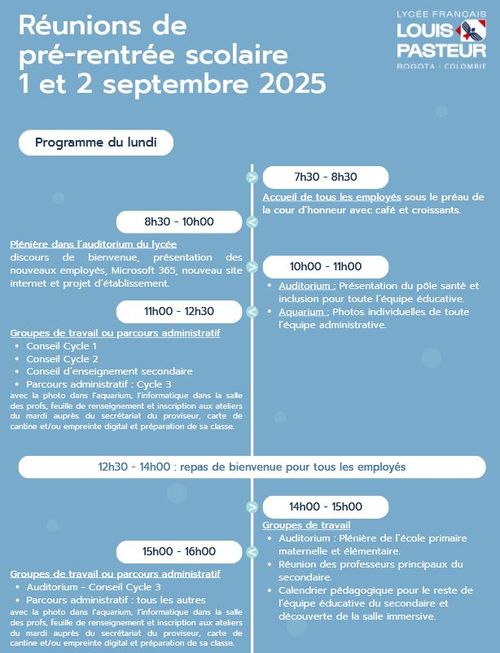 Mais chez nous, outre que la pré-rentrée ne peut être en août, les nouveaux arrivant de France n’ayant légalement le droit de bosser en Colombie qu’au premier septembre, nous avons nous, 2 jours de pré-rentrée.