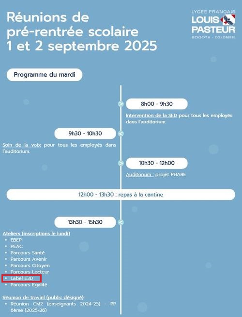 Tu remarqueras en rouge, l’atelier que ma collègue Monica et moi devions animer concernant la labellisation E3D de l’établissement.