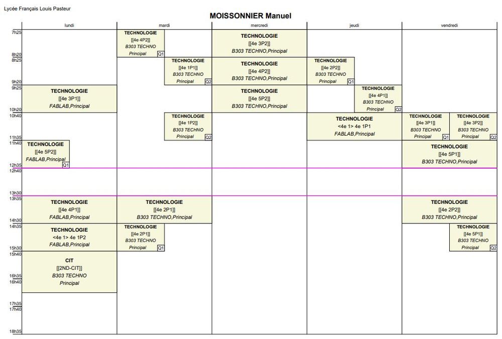 Sauf que cet EdT tiré de Pronote n’est pas trop lisible pour un novice, surtout à cause des heures qui n’ont lieu qu’en quinzaine. Voici donc à quoi ressembleront mes semaines.
