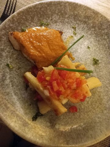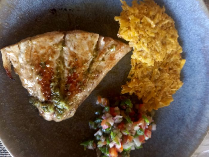 Et déjeuners et dîners, pas à la carte mais avec 2 options, que j’ai axé exclusivement sur le poisson (même au petit déj, avec le fameux piscillo).