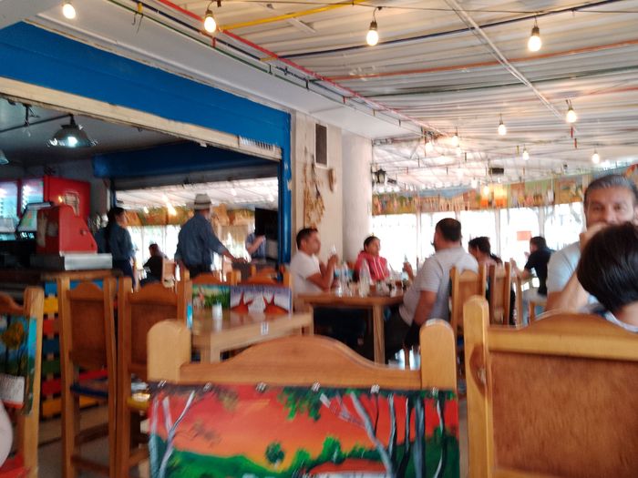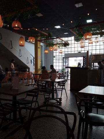 Décoration colorée, serveurs en chapeau typique de la région de Medellin, beaucoup de succès comme cantine dans le quartier, prix correct (80.500 COP, 17€ pour 2, plat principal et une bière).
