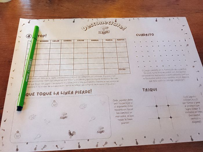 Ou tu joues avec le set de table en attendant ton poulet grillé-frites! Et son pot de limonade naturel!