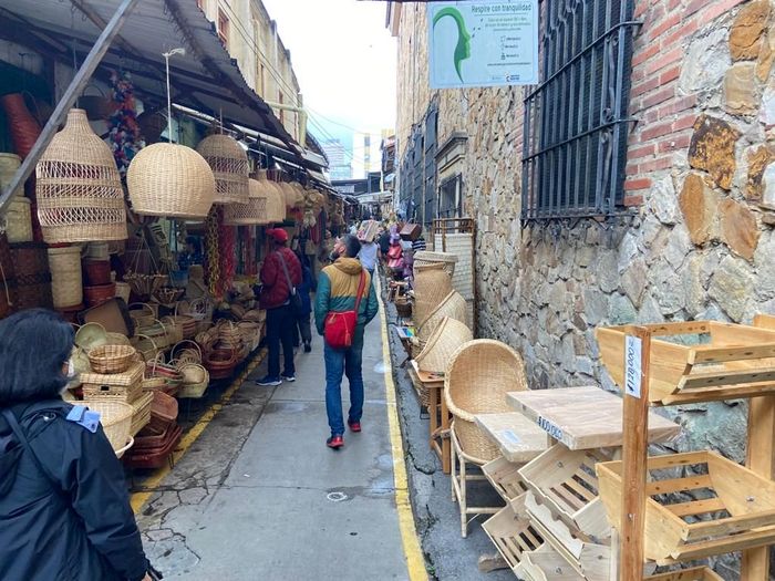 Et c’est parti: un premier échec pour voir la place entre le Palais National et la Casa de Nariño, fermée en ce moment, pour cause de manifestations, un passage au Pasaje Rivas pour voir de l’artisanat….. puis la Candelaria jusqu’au marché de la Concordia.