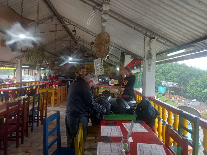 Malheureusement c’est en ce lieu que nous connaîtrons notre premier soucis: la moto d’Alejandro ne veut plus démarrer et un relais fait un drôle de bruit! Direction le mécano…. qui redémarrera la moto, mais Alejo ne doit plus l’arrêter. Il préférera donc prendre le chemin du retour vers Bogota pour éviter les risques.