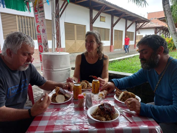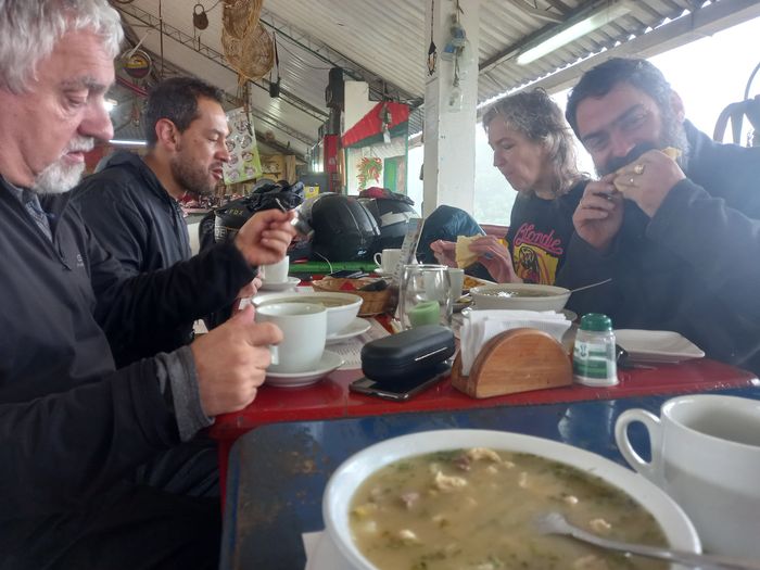 Et c’est après environ 60 kilomètres sous une pluie battante la plupart du temps que l’on s’arrête petit-déjeuner! Avec le traditionnel mondongo, la soupe de tripes donc Ferny l’aveyronnais raffole!