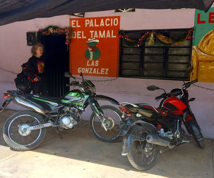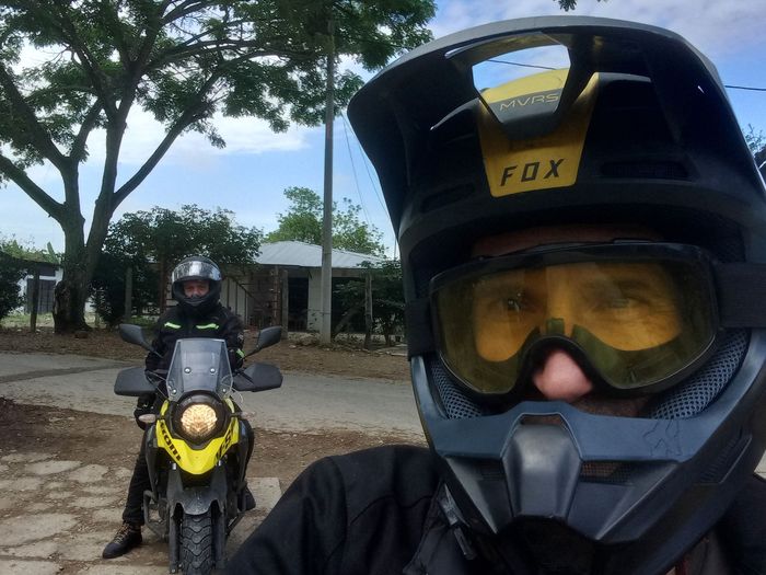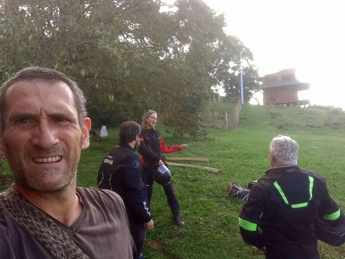 Nous voilà rendus après 300 derniers mètres complexes! L’heure de fêter la première venue de Davina chez elle en moto!
