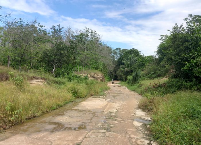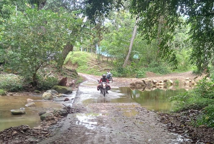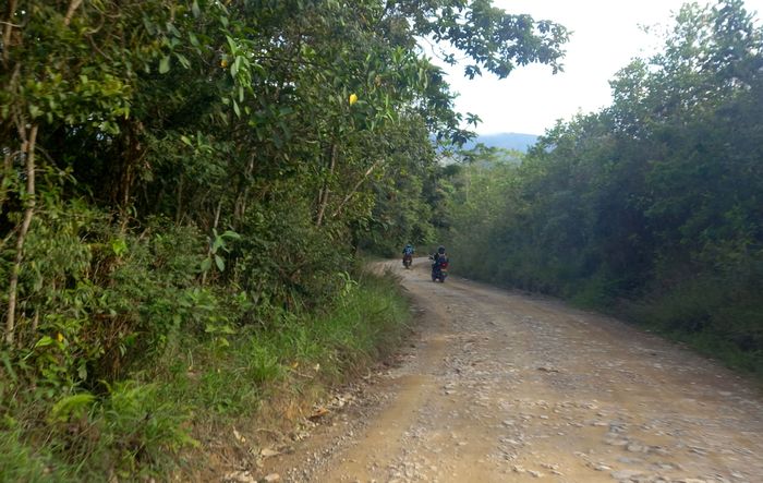 Sans entrer dans la ville, nous bifurquons à droite pour suivre notre première piste du périple, juste assez humide pour des débutants comme nous.